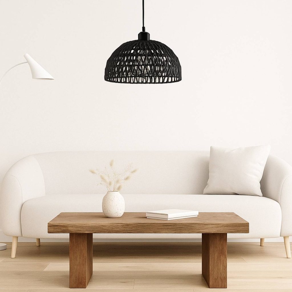 Cet abat-jour suspendu en bambou noir tissé à la main en corde de chanvre apporte une ambiance japonaise et chaleureuse. Parfait pour les chambres, salons, bars ou restaurants, il diffuse une lumière douce et relaxante.