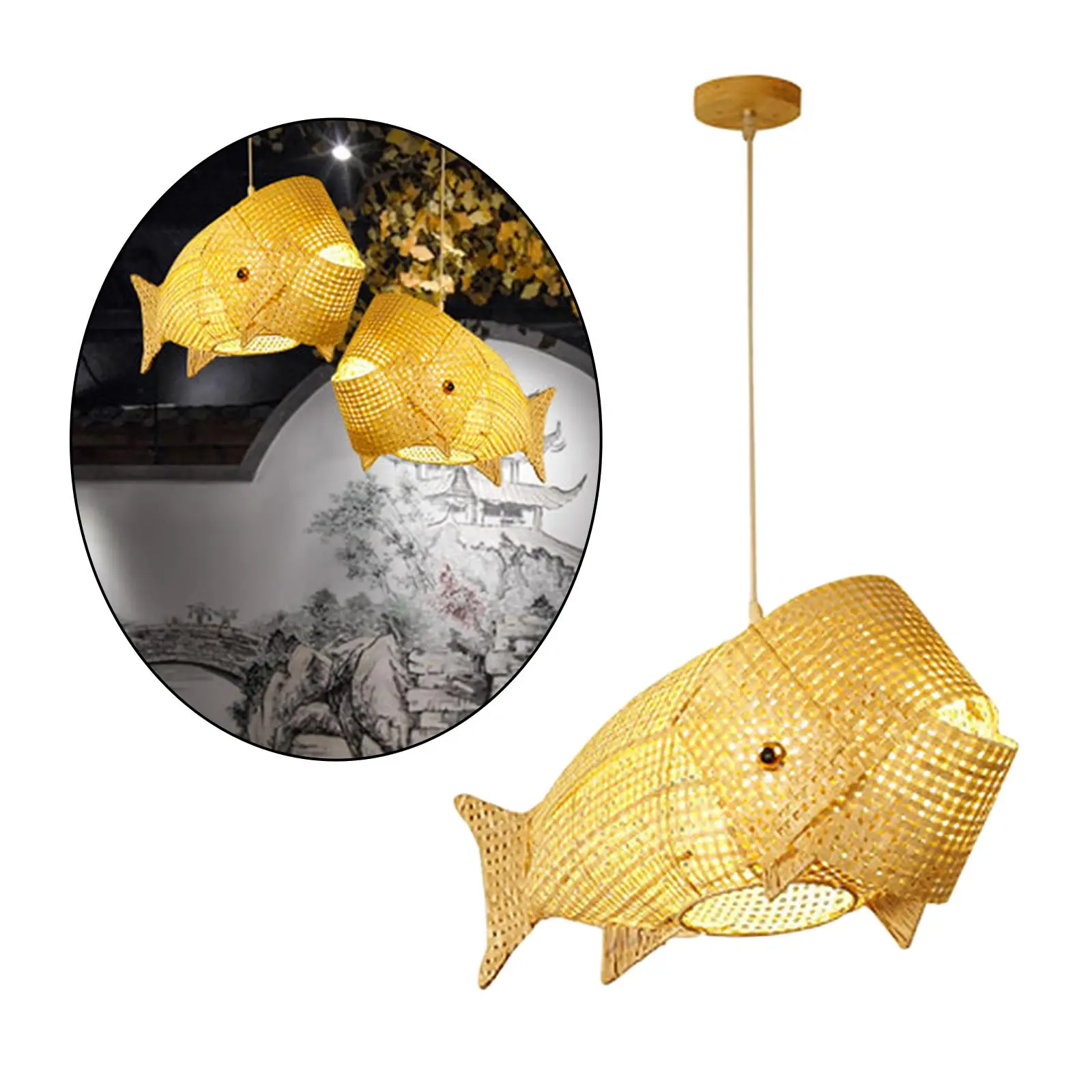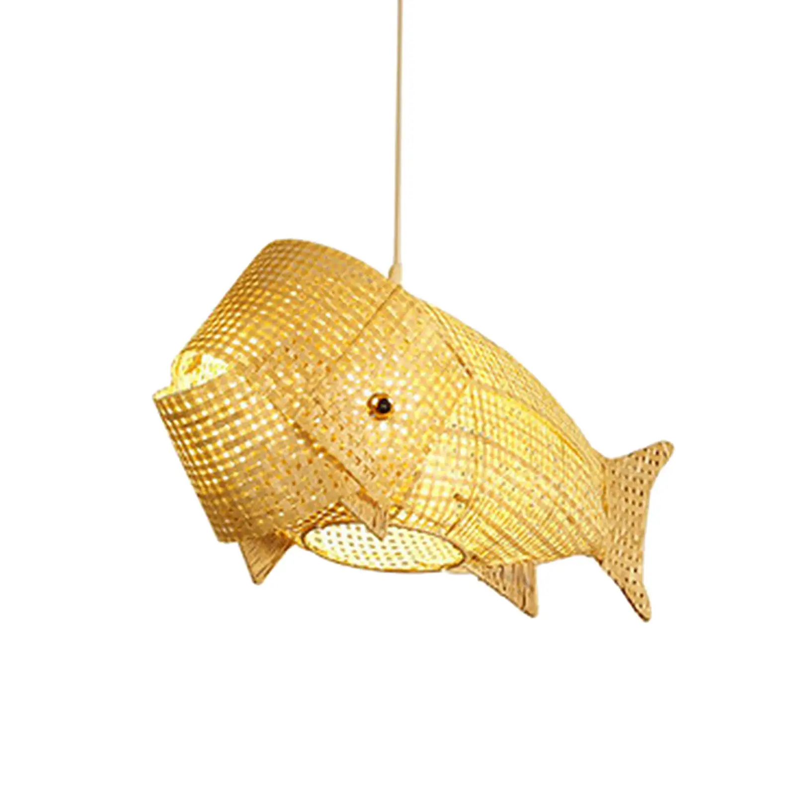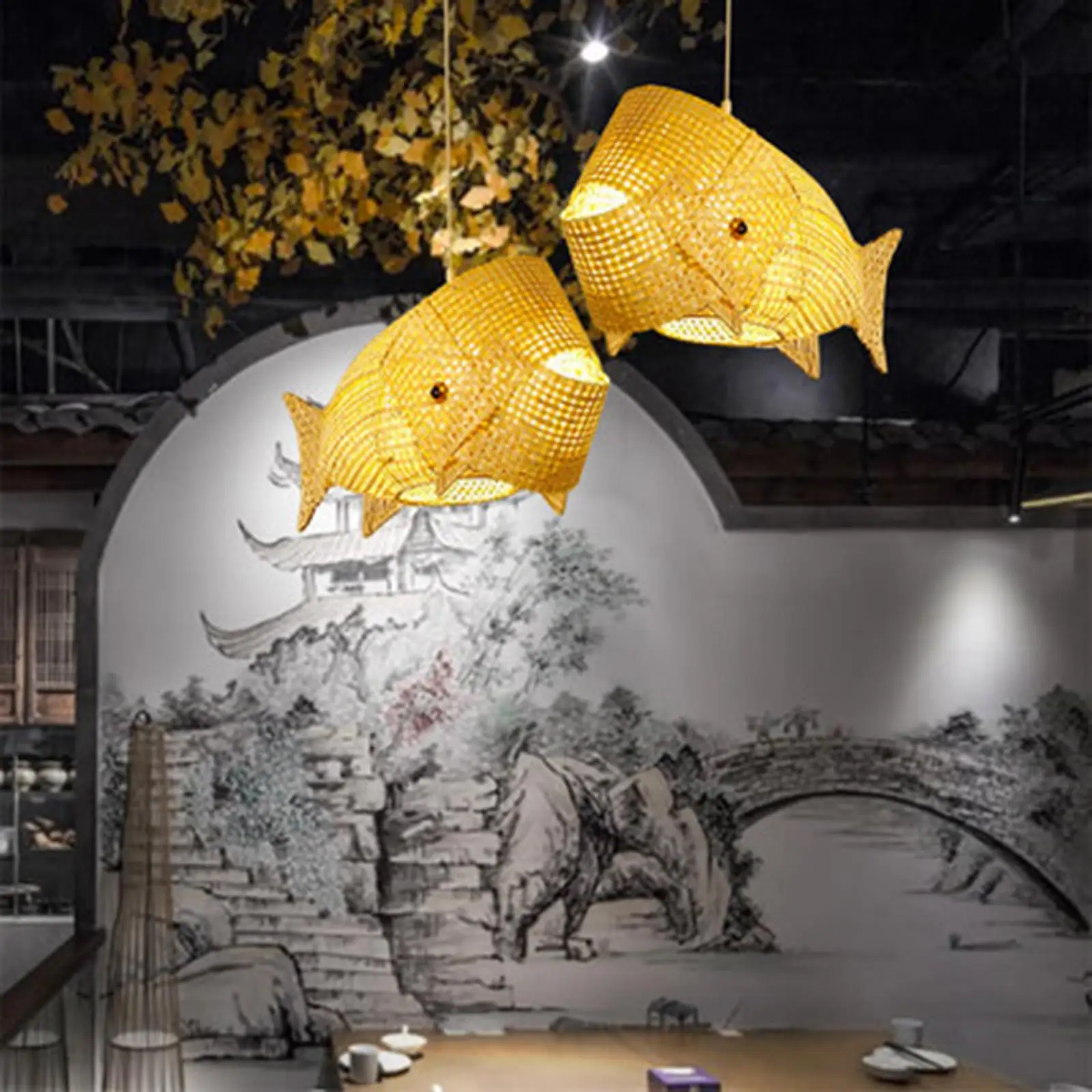 Abat-jour en bambou avec motifs poissons et requins – Luminaire suspendu pour restaurant et