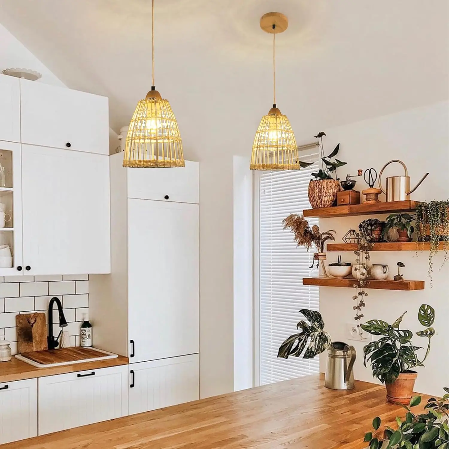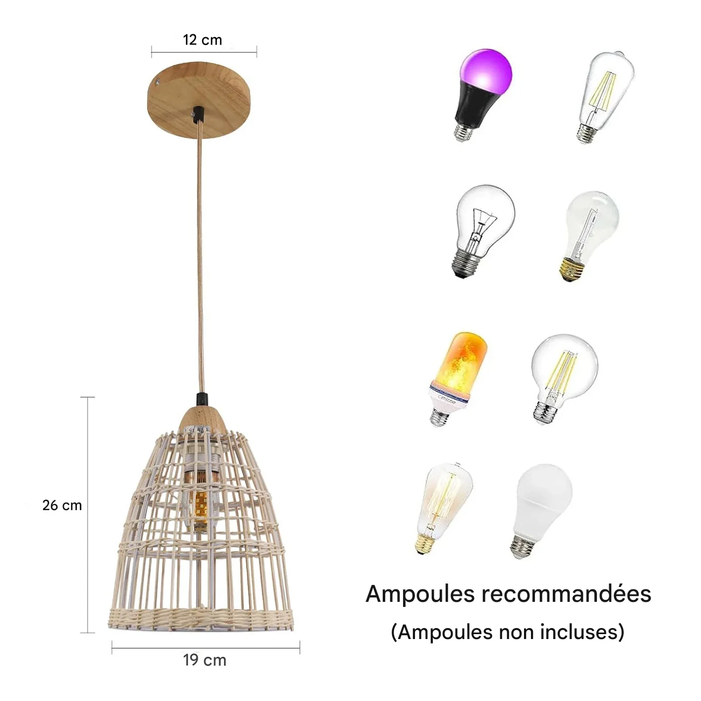 Illuminez vos espaces avec ce lustre en rotin naturel. Son design tissé à la main apporte une touche rustique et élégante pour le hall, la cuisine ou la salle à manger, tout en accueillant une ampoule E27.