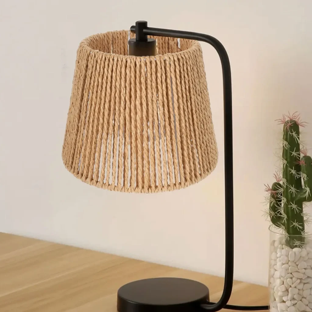 Abat-jour en osier pour lampe de chevet – Luminaire décoratif en corde de papier et métal