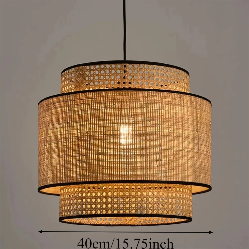 Abat-jour suspension en bambou naturel – Lustre asiatique pour salon et plafond