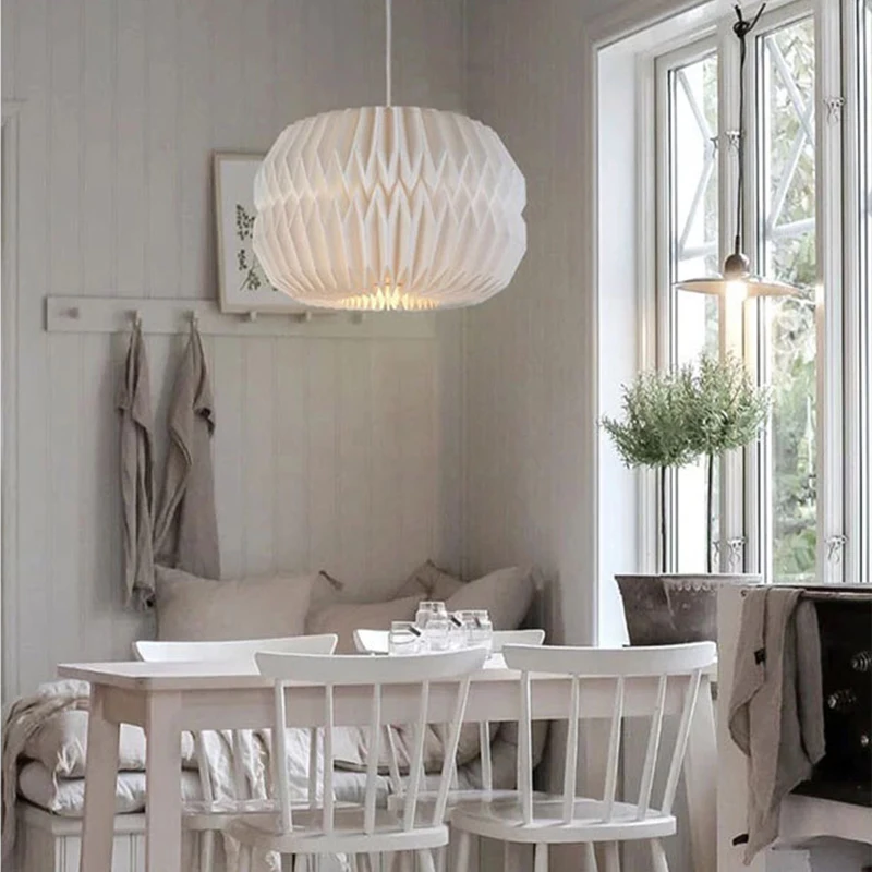 Éclat Minimaliste : Abat-jour Suspension Origami en Papier Blanc