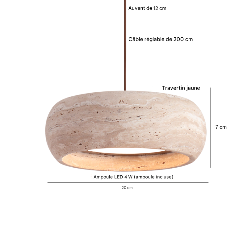 Ce luminaire rond suspendu combine esthétique rétro et fonctionnalité moderne. Avec son design industriel et sa couleur jaune travertin, il transforme votre espace en un lieu accueillant et stylé. Léger (1,45 kg) et facile à installer, il devient un élément décoratif incontournable pour tout intérieur recherchant une touche vintage et chaleureuse.