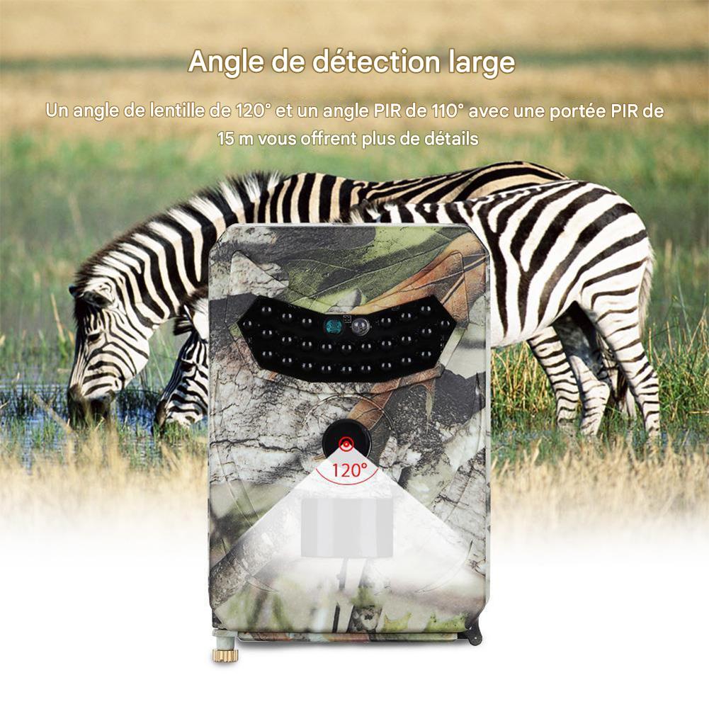 Avec une résolution photo de 12 MP et vidéo FHD 1080P, un déclenchement ultra-rapide de 1 s et un angle PIR de 110°, cette caméra garantit des clichés nets et détaillés même dans l’obscurité totale. Les 26 LED infrarouges noires permettent une vision nocturne jusqu’à 15 m sans alerter les animaux.