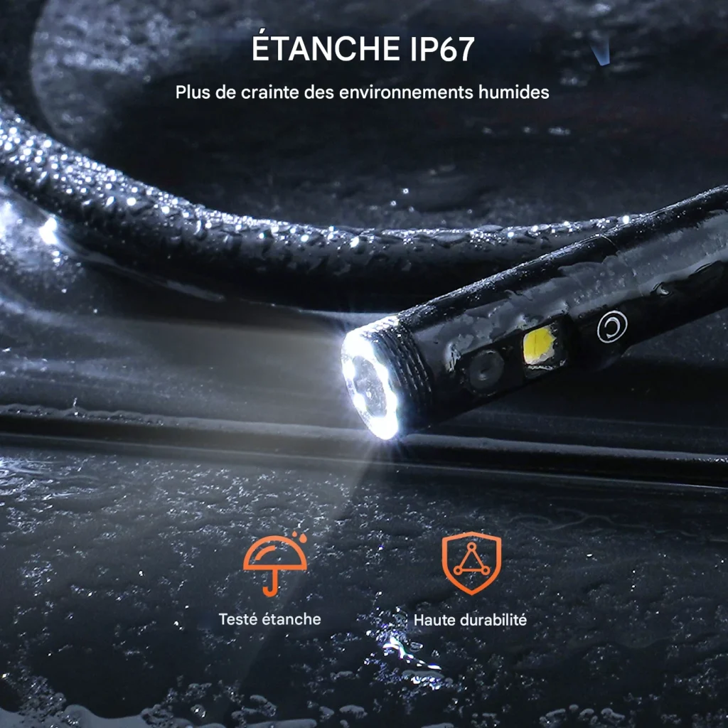 Cette caméra est équipée de 8 + 2 LED réglables pour éclairer les zones sombres et offrir une visibilité optimale. Ses accessoires inclus (crochet, aimant, miroir) facilitent la récupération d’objets perdus. Compacte et facile à utiliser, elle permet de capturer photos et vidéos en HD, rendant vos inspections précises et rapides, même dans les espaces confinés.