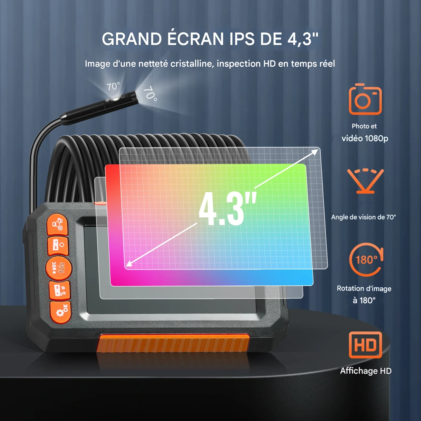 Caméra Endoscope Double Lentille 1080P avec Écran 4,3" Étanche