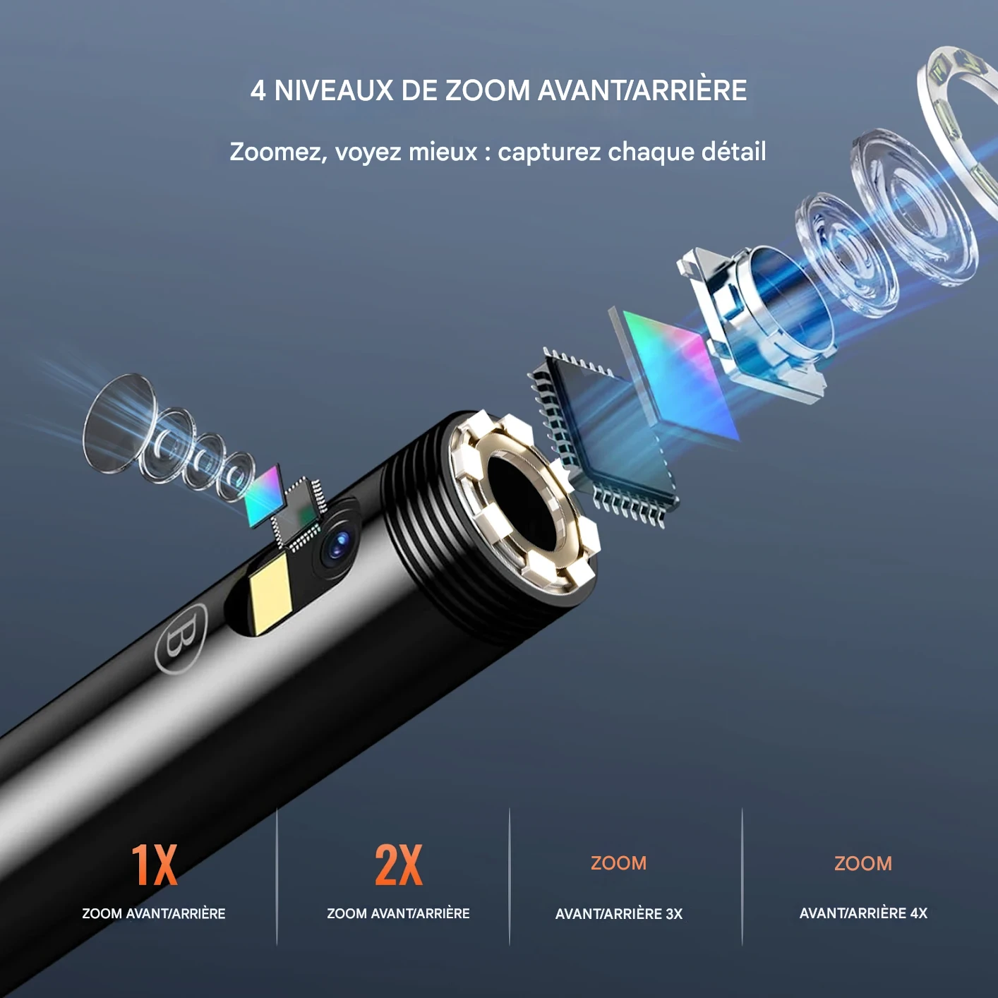 Zoom : 1x, 2x, 3x, 4x