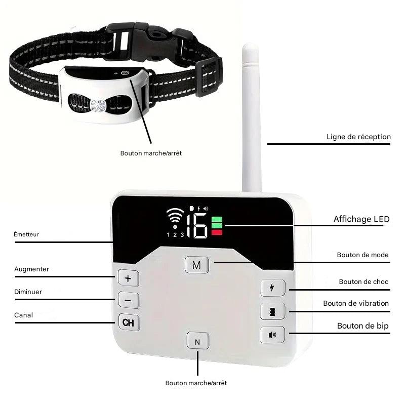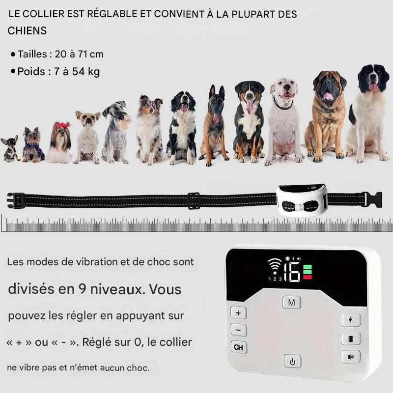 Offrez à votre chien un espace sûr et une éducation efficace grâce à ce système 2-en-1 combinant clôture sans fil et collier de dressage. Il permet de définir des limites claires tout en favorisant un apprentissage progressif et respectueux.