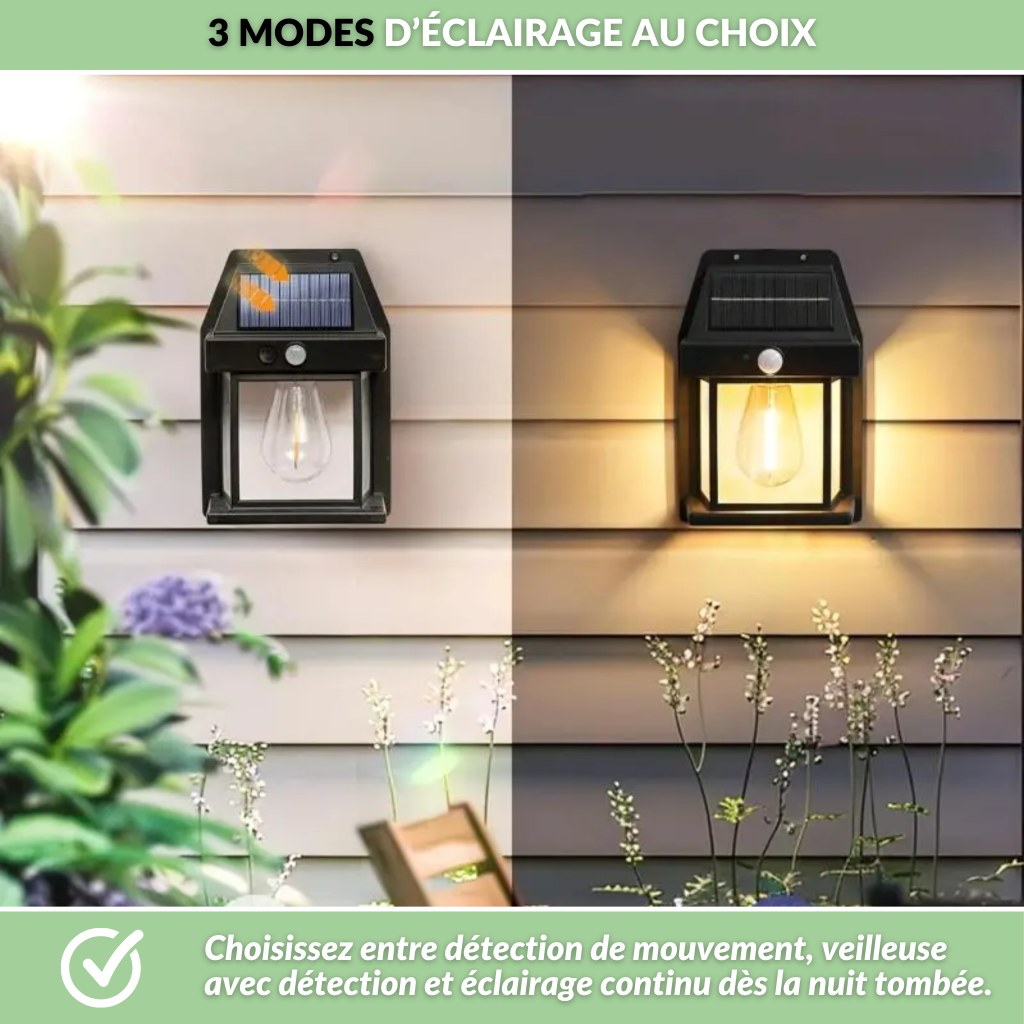 Cette lampe solaire éclaire vos extérieurs dès qu’un mouvement est détecté ou à la tombée de la nuit. Idéale pour sécuriser jardins, allées, entrées ou terrasses, elle offre une lumière douce et rassurante tout en fonctionnant sans branchement électrique.