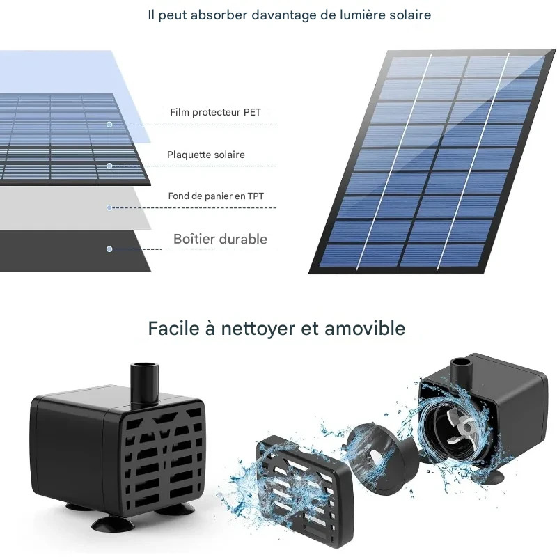 Fonctionnant uniquement à l’énergie solaire, cette pompe à eau est écologique, sécurisée et facile à installer. Son panneau solaire haute efficacité démarre en quelques secondes sous le soleil et offre différents styles de jets selon l’intensité lumineuse, pour un extérieur vivant et harmonieux.