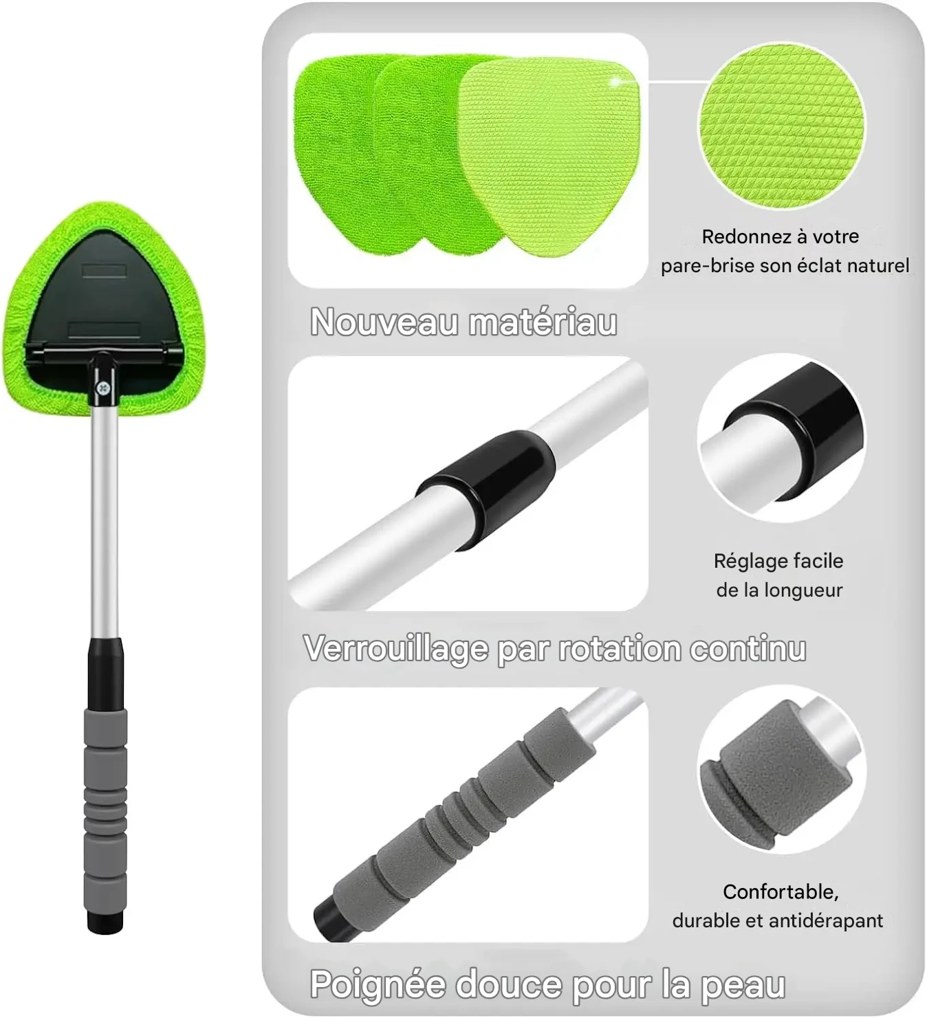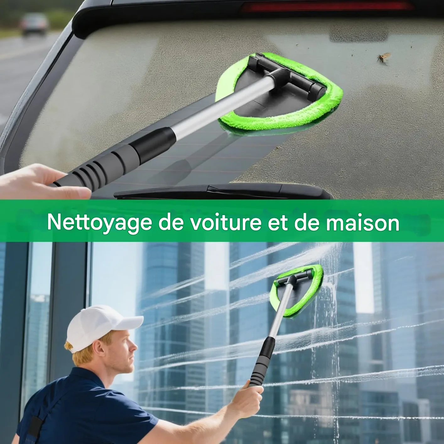 Kit Nettoyage Pare-Brise Télescopique 2026 – Microfibre Haute Efficacité