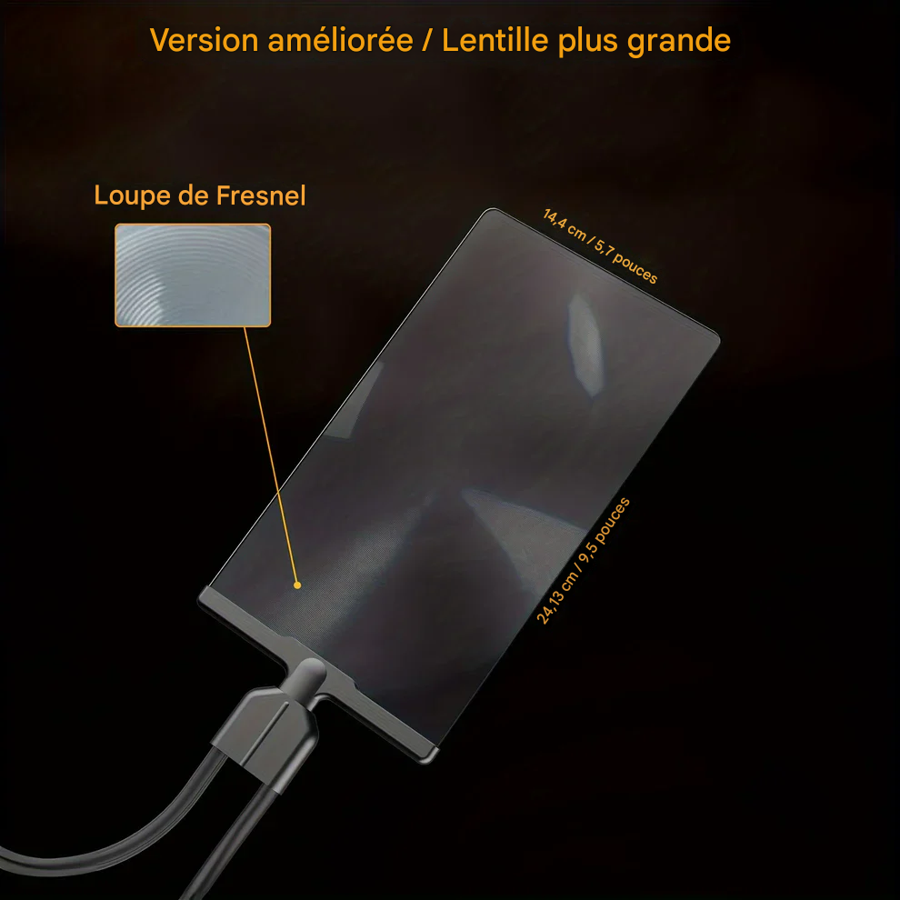 La loupe de lecture dispose d’un grossissement x3 (3 fois)