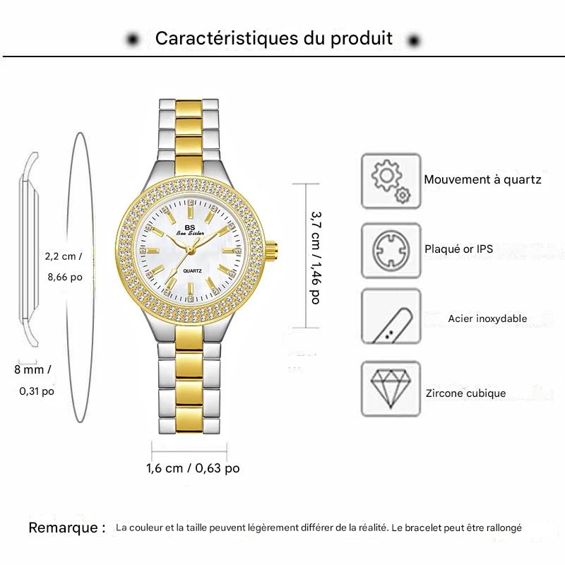 Montre femme élégante – Quartz, acier inoxydable, cristal
