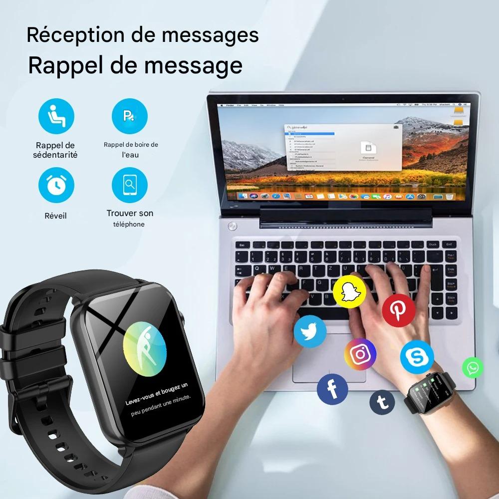 Fonctions principales : tactile complet, Bluetooth call, NFC, lampe LED, 100+ modes sportifs