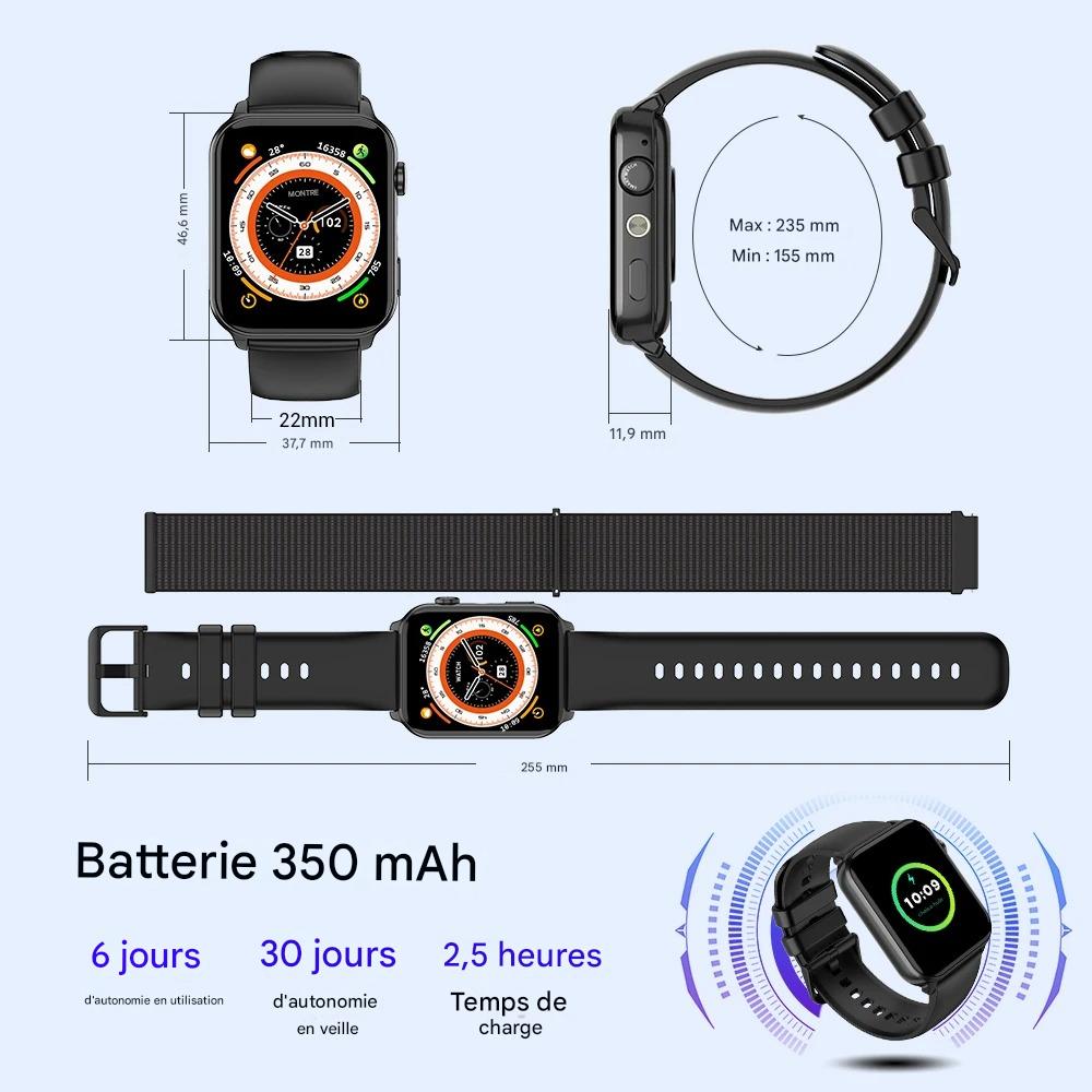 Montre intelligente homme – tactile complet, Bluetooth call, NFC