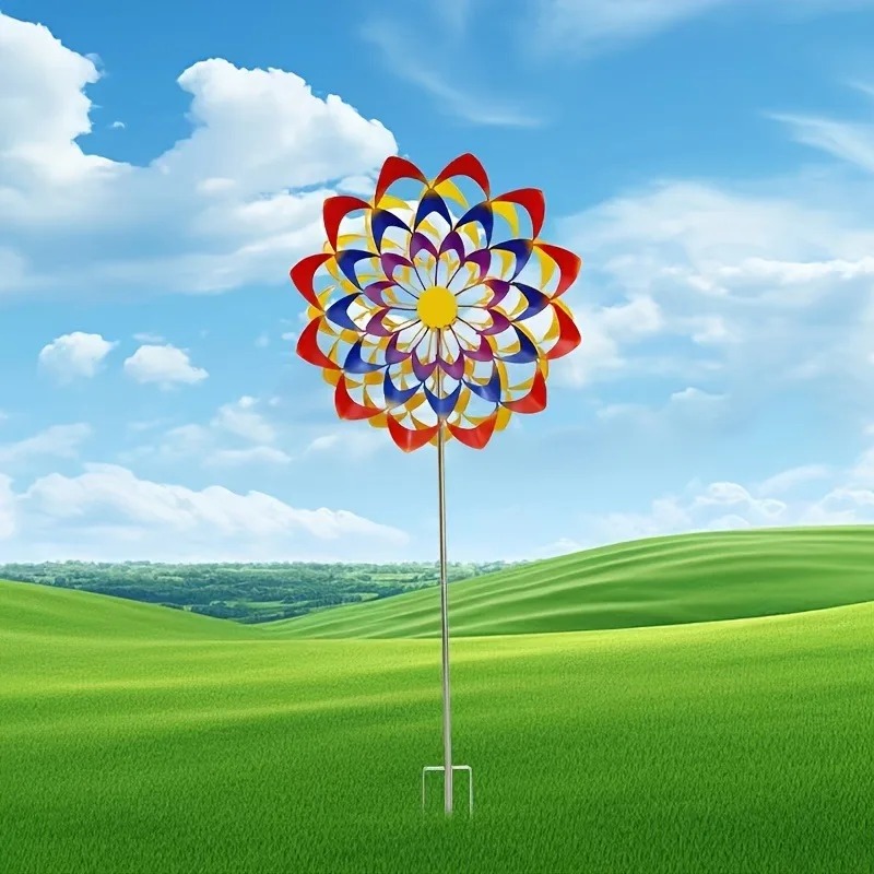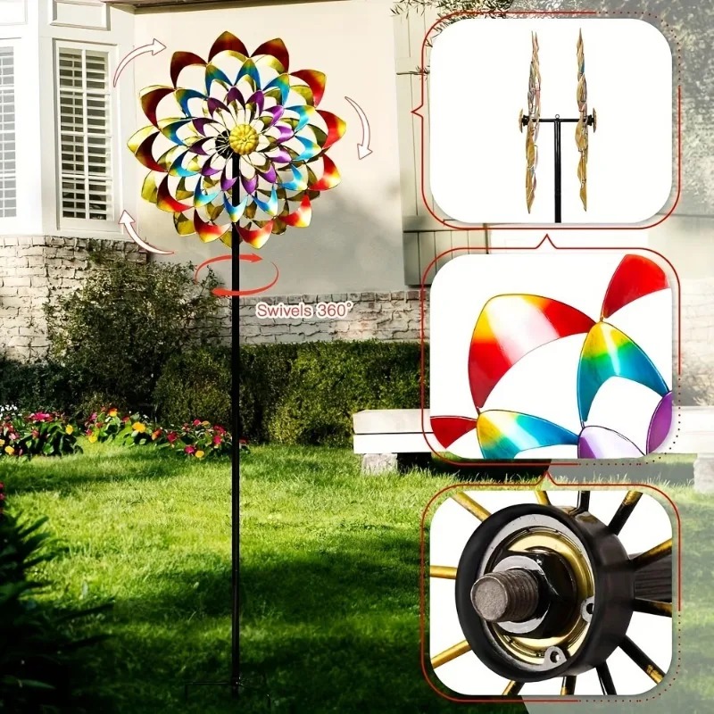 Moulin à Vent Arc-en-Ciel en Métal – Élégance et Mouvement pour Votre Jardin