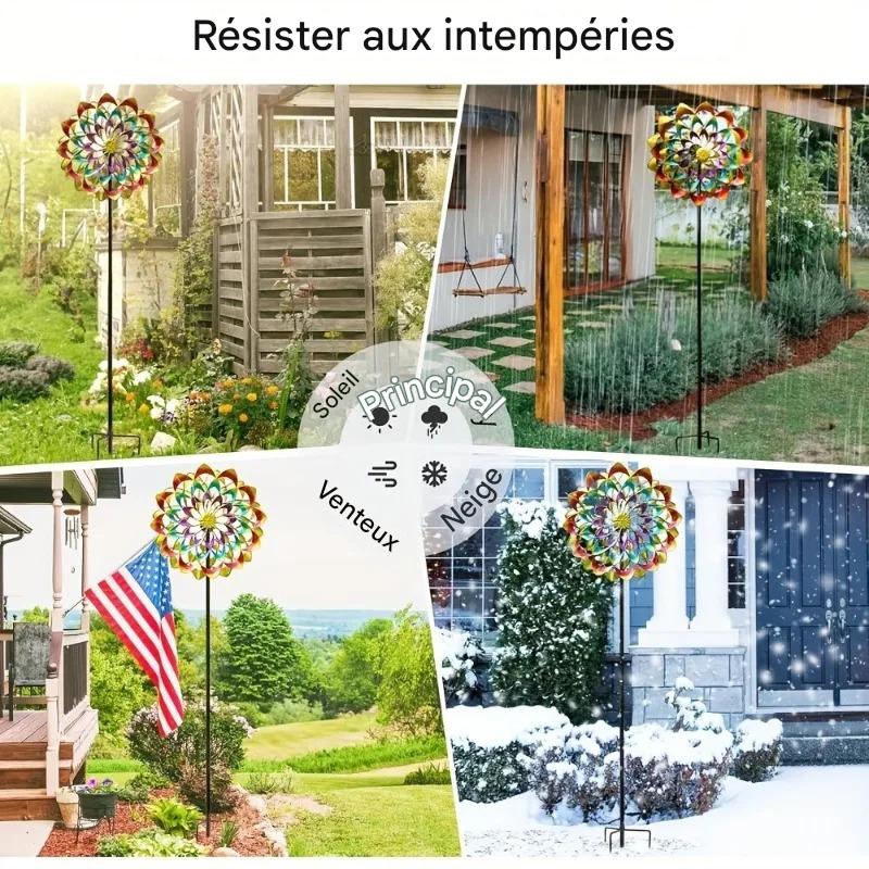 Cette pique de jardin en fer solide est à la fois décorative et fonctionnelle. Ses pales colorées tournent avec le vent, ajoutant une touche ludique et artistique à votre extérieur. Un choix idéal pour les amateurs de jardinage et de décoration originale.