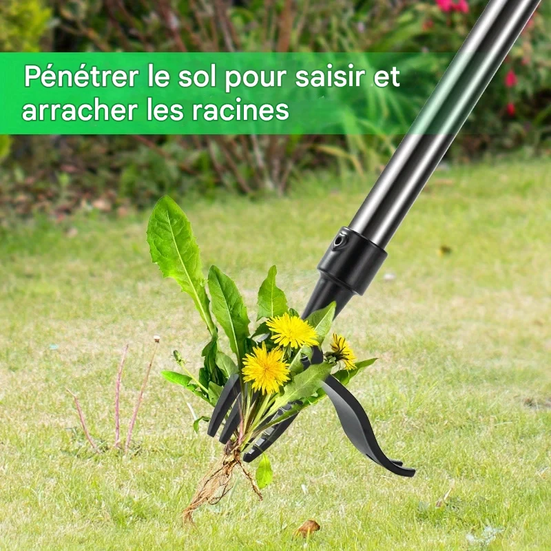 Éliminez facilement les mauvaises herbes avec cet extracteur à 4 griffes en acier inoxydable. Son utilisation simple vous permet de retirer les racines en profondeur sans effort, pour un jardin propre et entretenu.