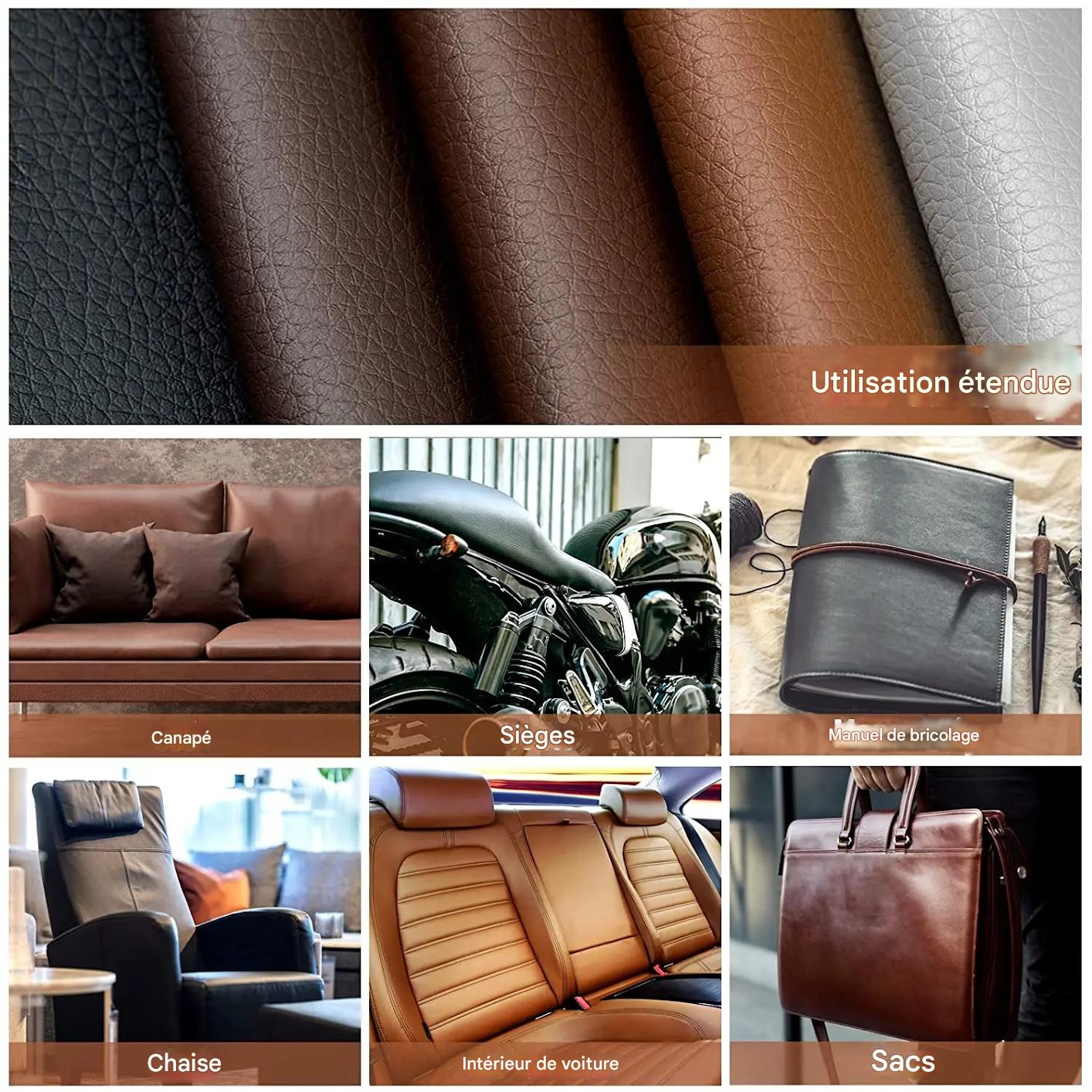 Utilisation : Canapés, fauteuils, sièges de voiture, sacs, chaussures, vestes, coussins, motos, camions et autres surfaces en cuir ou vinyle
