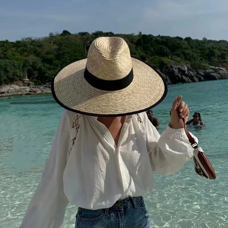 Protection solaire femme en paille style Panama ajustable