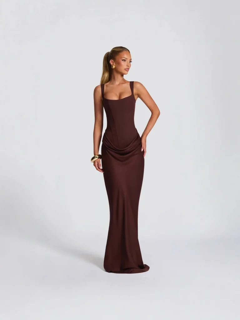 Robe Longue Slim Fit – Style Moderne et Féminité Assurée