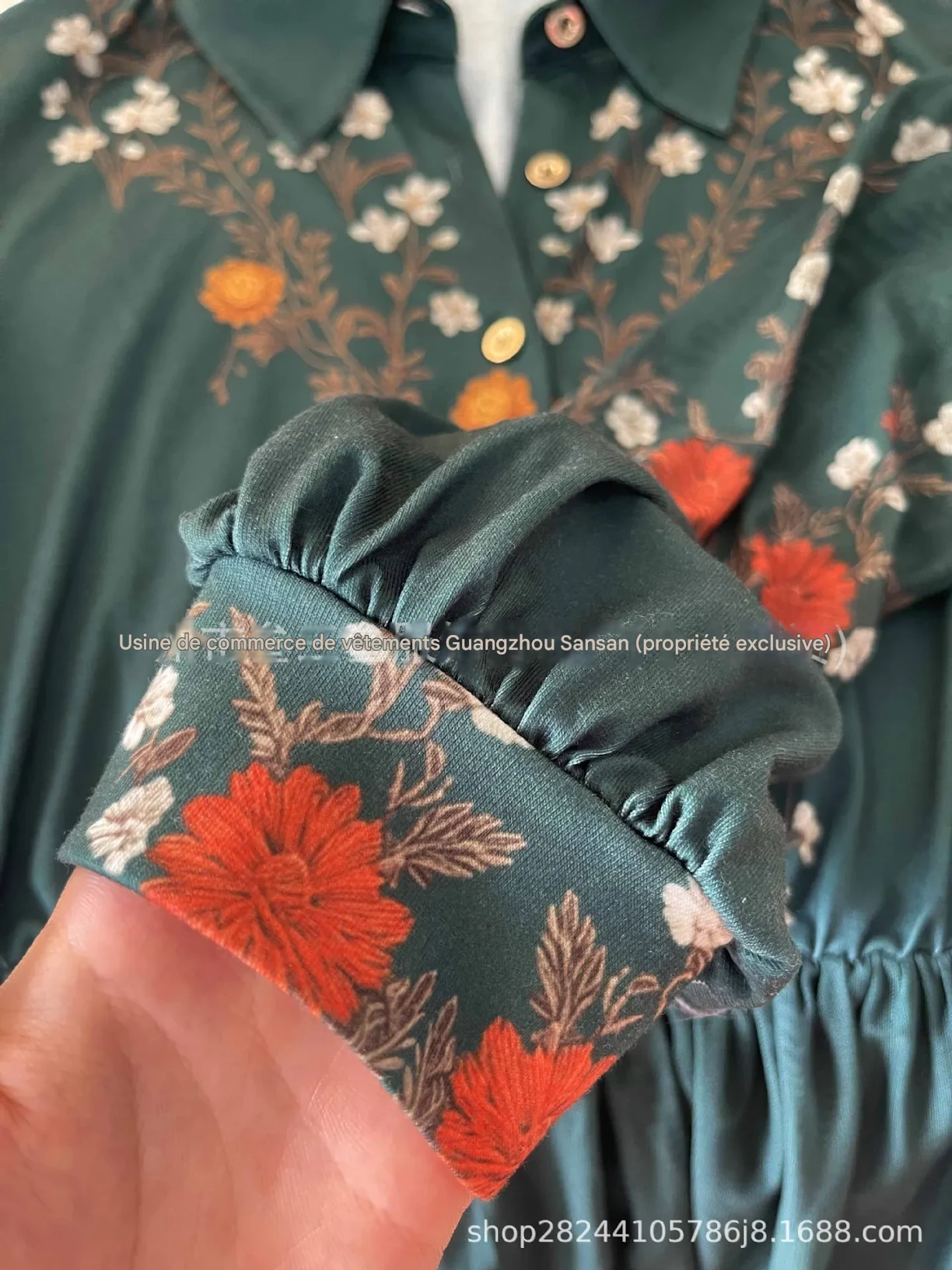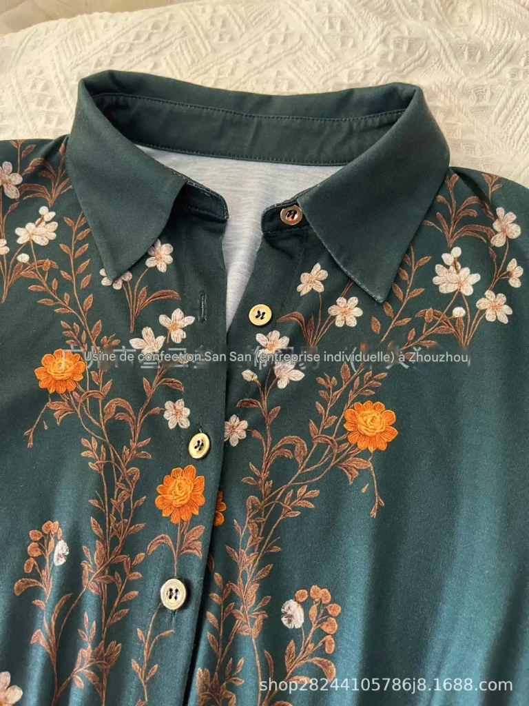 Robe Femme Vintage Imprimée – Manches Longues Col Revers