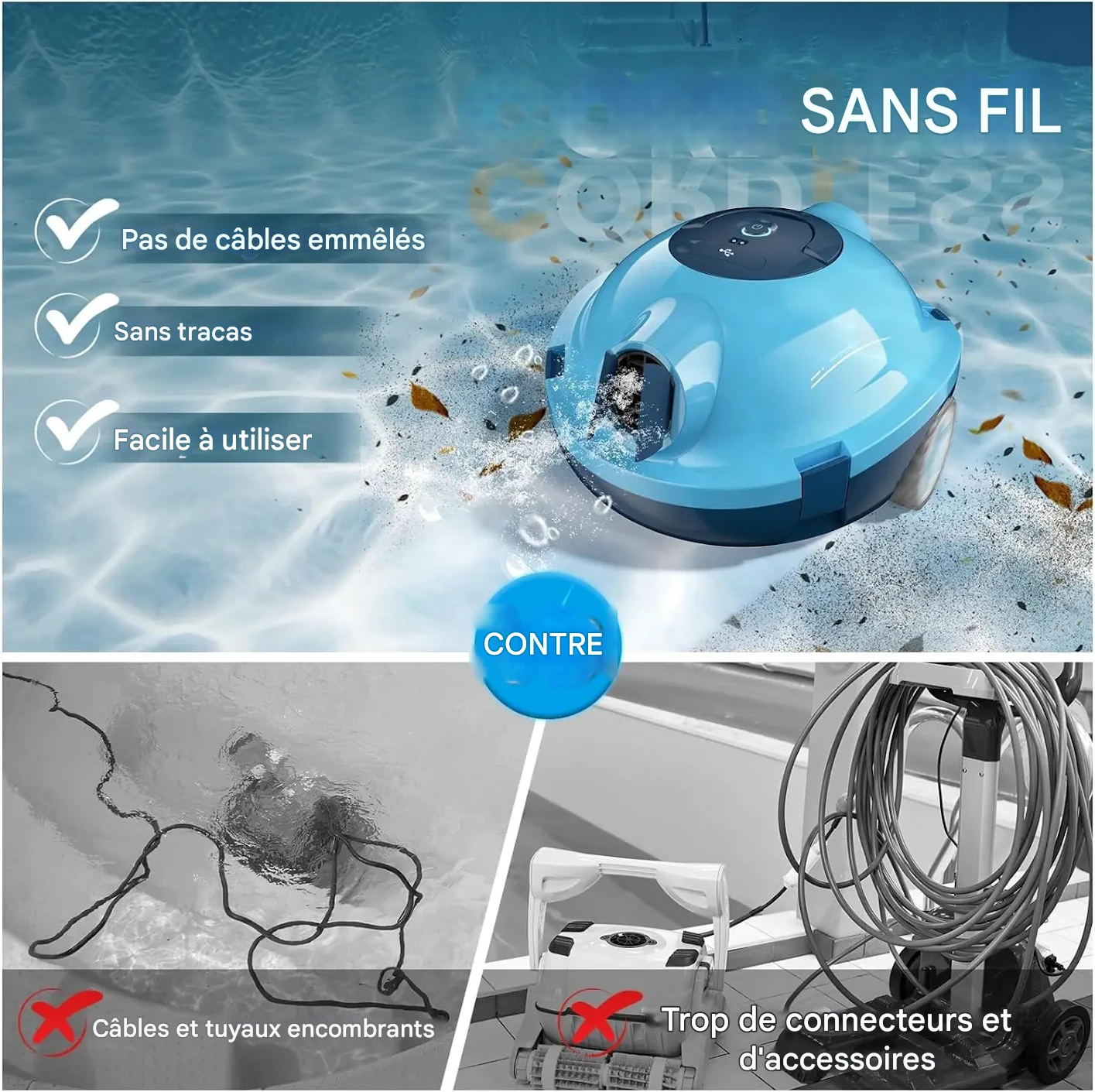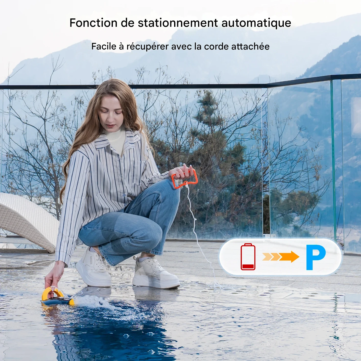 Équipé d’une fonction de stationnement automatique et d’une batterie lithium de 2550 mAh, ce robot offre jusqu’à 100 minutes de nettoyage continu. Étanche IPX8, il fonctionne sur des profondeurs allant jusqu’à 2,5 m et s’adapte à un angle de fluage maximum de 15°. Facile à contrôler via un bouton tactile, il combine performance, sécurité et praticité pour tous vos besoins d’entretien.