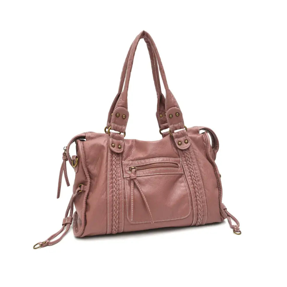 Sac en cuir vintage Klassi avec style rétro et accents tressés, beige