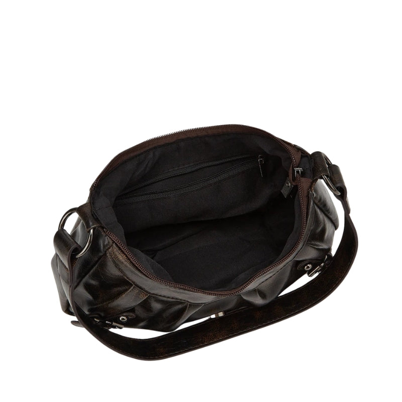 Optez pour un sac polyvalent qui s’adapte à toutes vos tenues. Ses poches bien pensées et sa fermeture à boucle assurent confort et sécurité, tandis que le cuir de qualité garantit résistance et élégance au quotidien. Disponible en noir et marron foncé pour tous les styles.