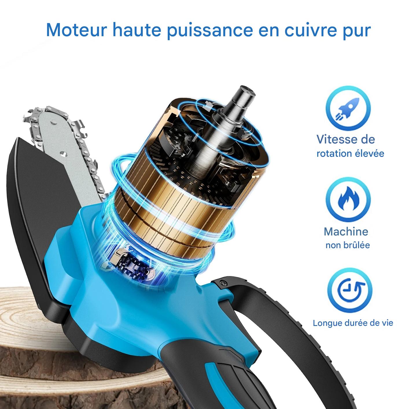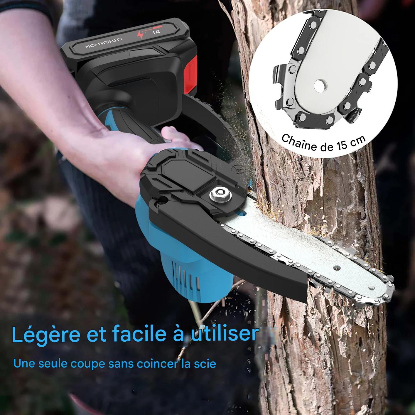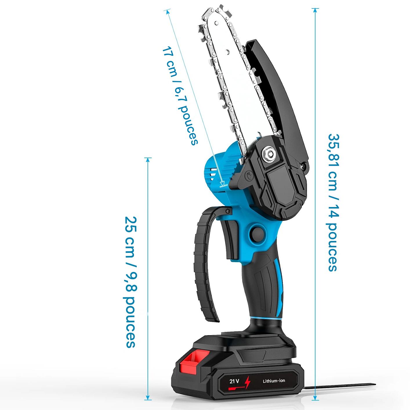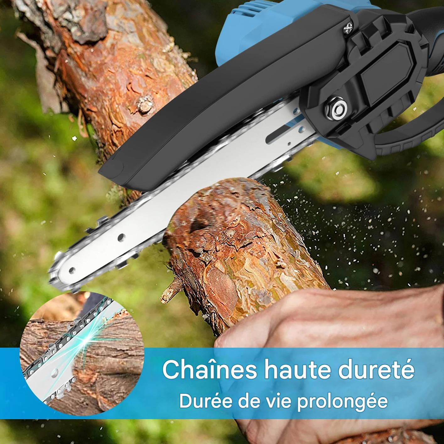 Découvrez cette tronçonneuse électrique sans fil de 6 pouces, équipée d’une chaîne haute dureté pour une coupe fluide et puissante. Capable de couper un bois de 5 pouces de diamètre en seulement 8 secondes, elle surpasse facilement les modèles 4 pouces, offrant rapidité et performance pour vos travaux de jardinage ou de menuiserie.