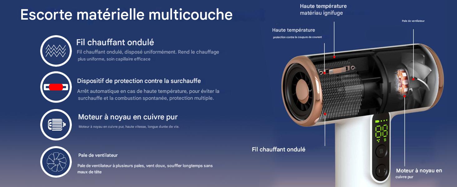 Sèche-Cheveux Sans Fil Haute Vitesse 30 000 RPM – Liberté et Performance