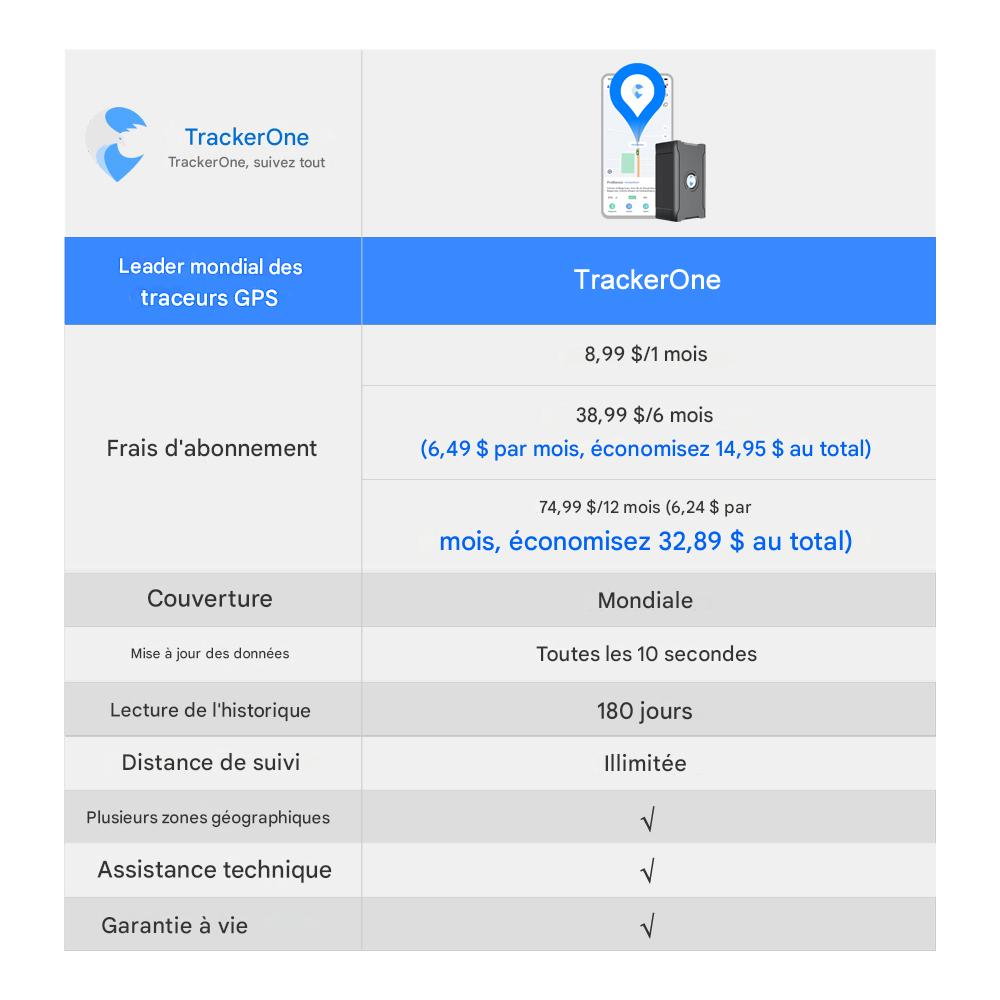 Ce traceur GPS longue autonomie veille sur vos biens 24h/24 grâce à sa localisation haute précision (≤ 5 mètres) et ses alertes instantanées en cas de vibration, coupure ou batterie faible. L’application mobile TrackerOne (iOS & Android) permet de suivre vos objets en temps réel, de consulter l’historique et de gérer plusieurs zones géographiques facilement.