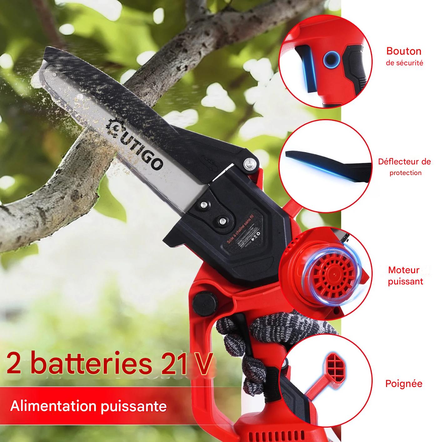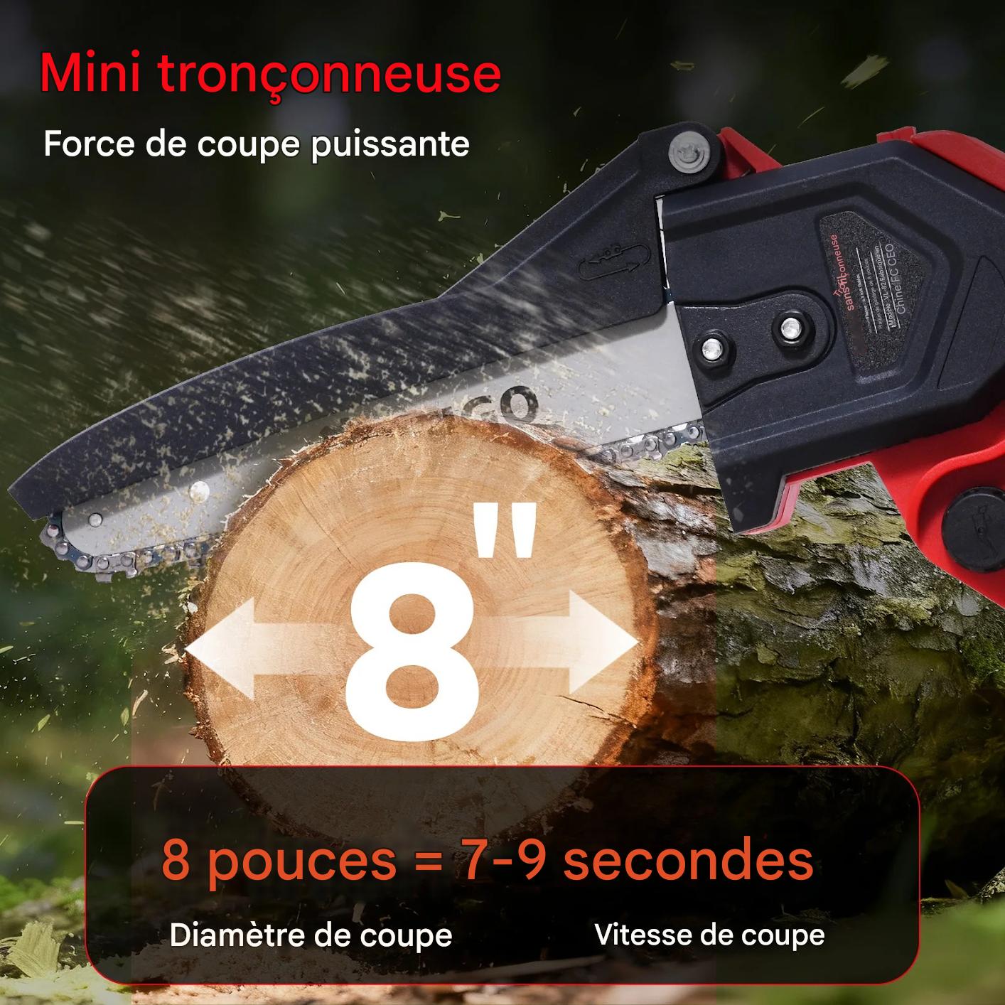 Tronçonneuse à Batterie 8 Pouces – Portable, 3 Guides de Chaîne