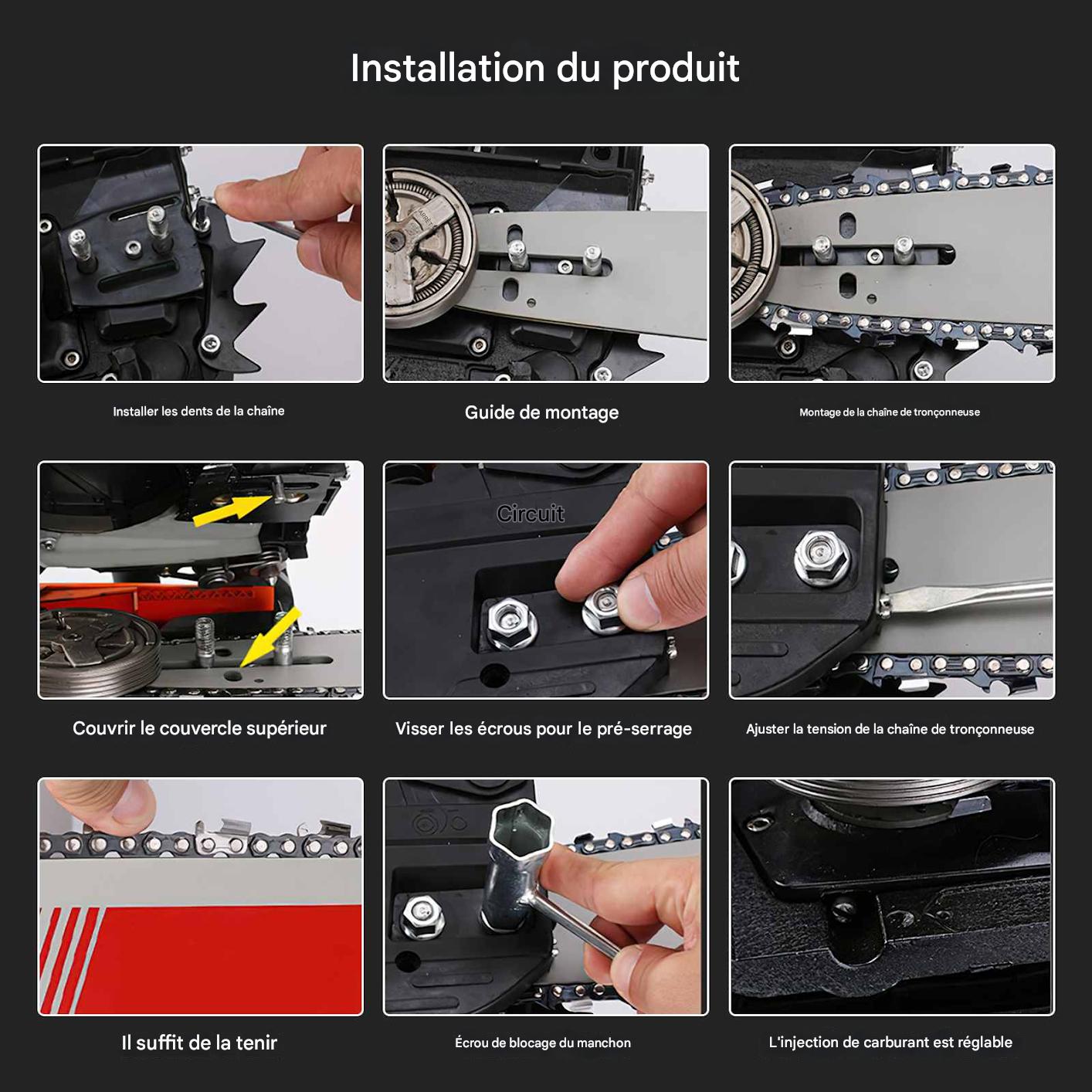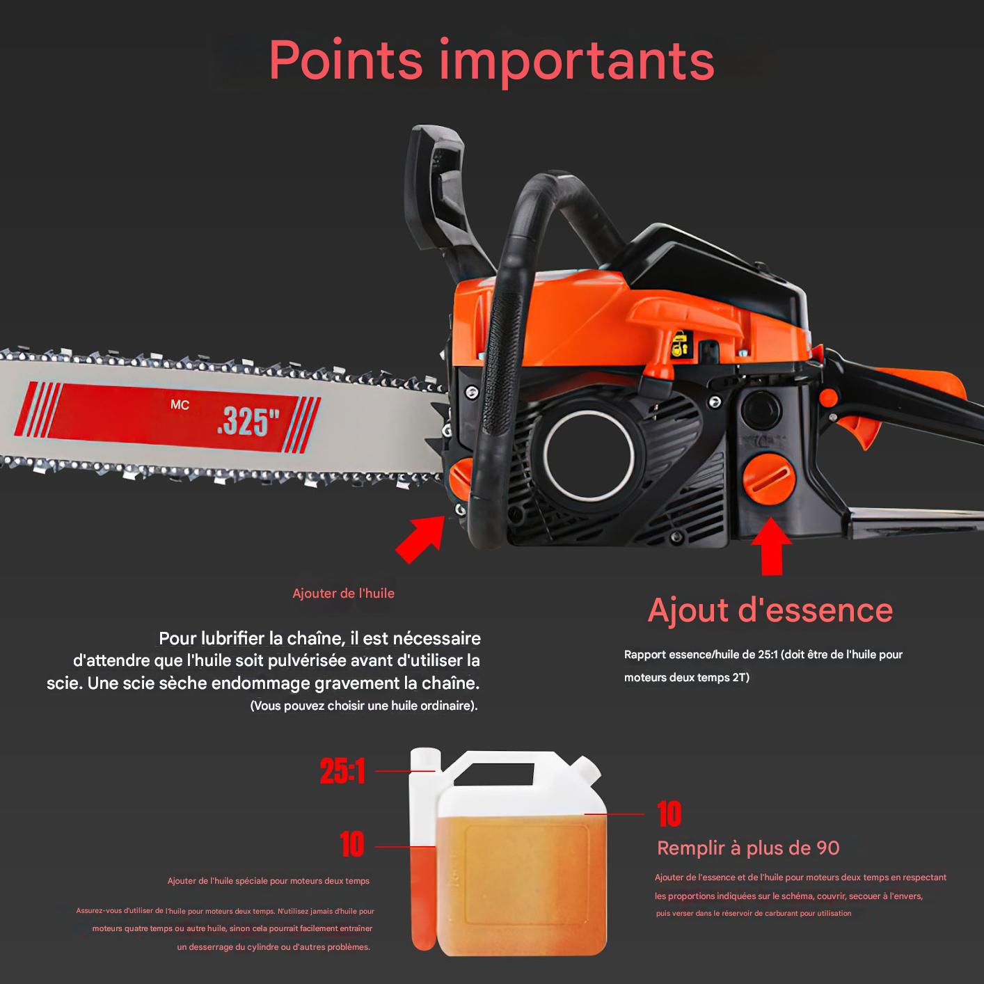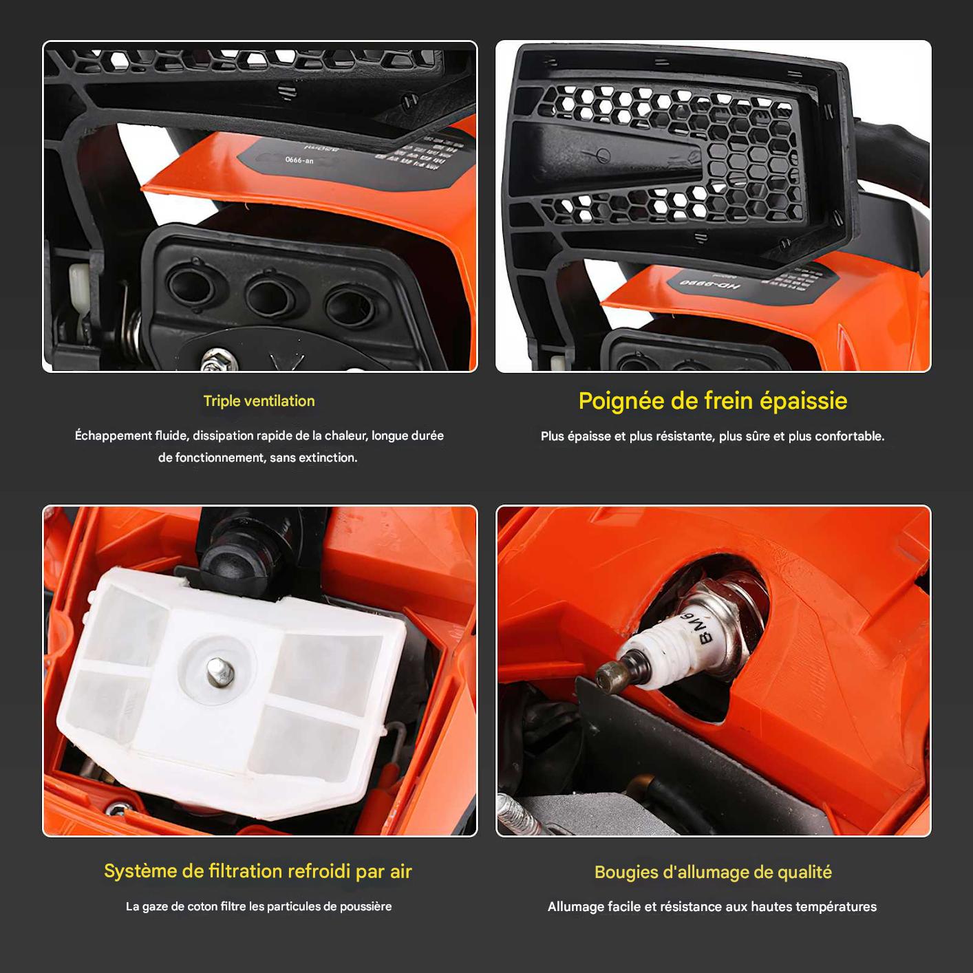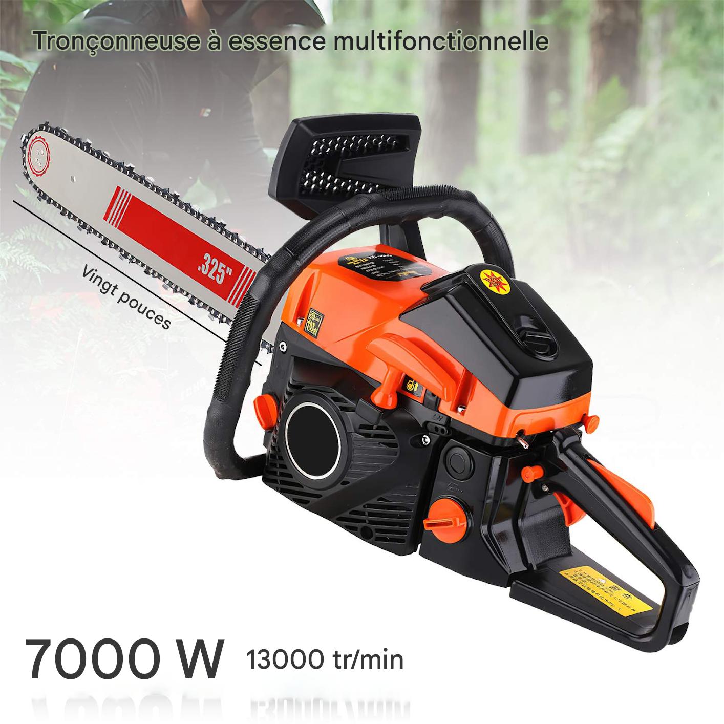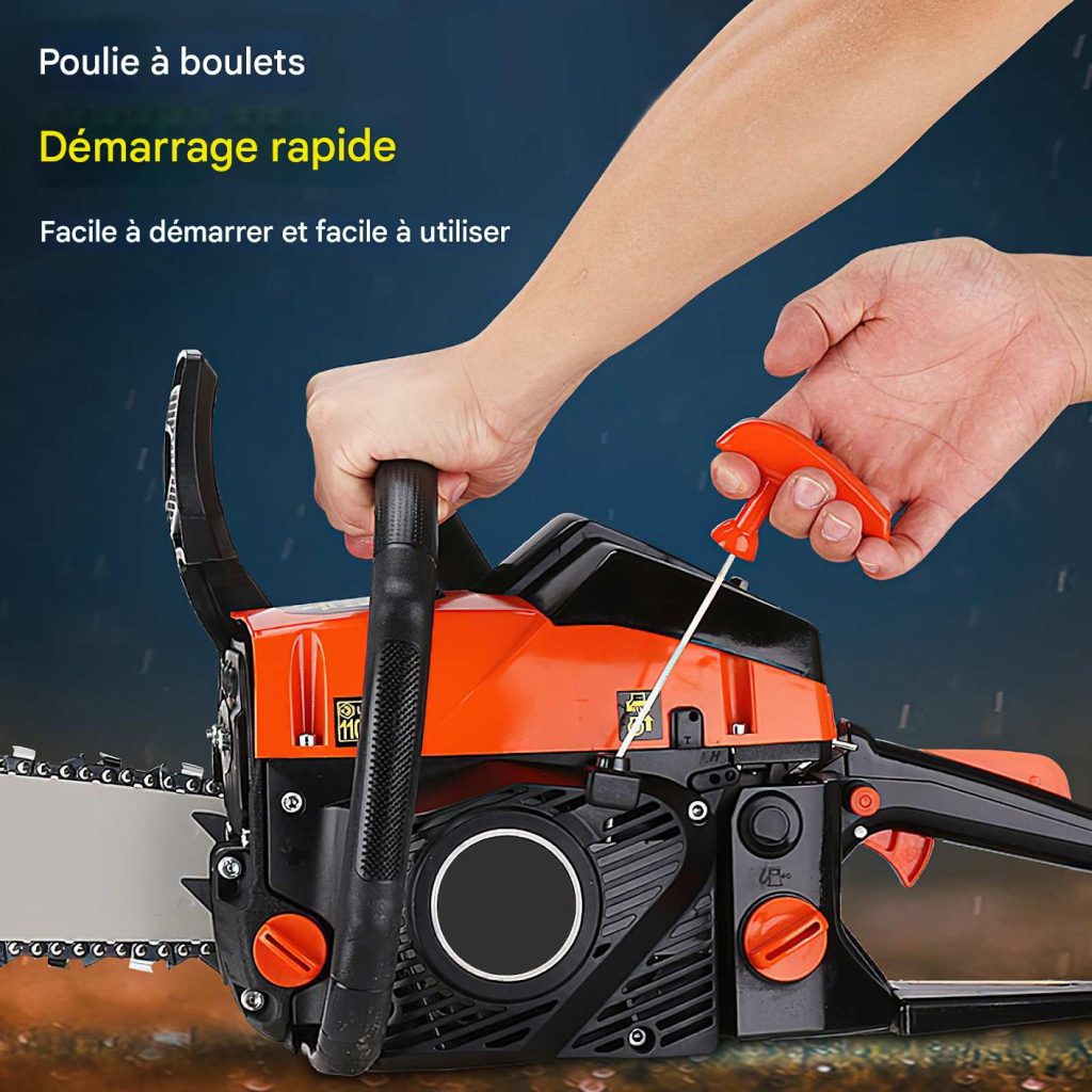 Avec 7000W et une vitesse de 13 000 tr/min, son moteur à essence 2 temps garantit des performances de coupe exceptionnelles pour les professionnels et passionnés de bois.