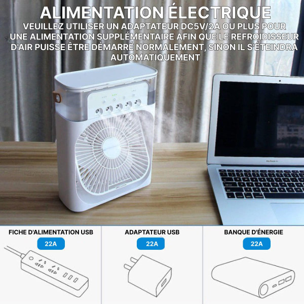 Ventilateur 3 en 1 Brumisateur Air Refroidissement Portable Silencieux